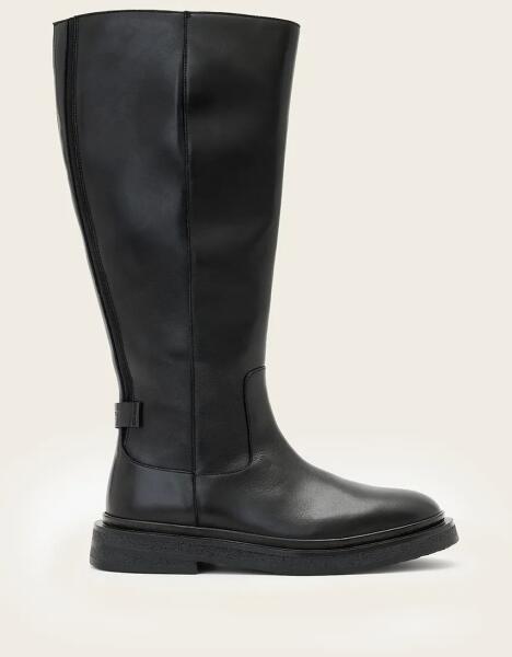 AllSaints bőr csizma Escher Rider Boot fekete, lapos talpú, W083FD - fekete Női 37