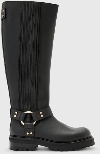 AllSaints bőr csizma MADDIE HIGH BOOT fekete, lapos talpú, W185FB - fekete Női 39