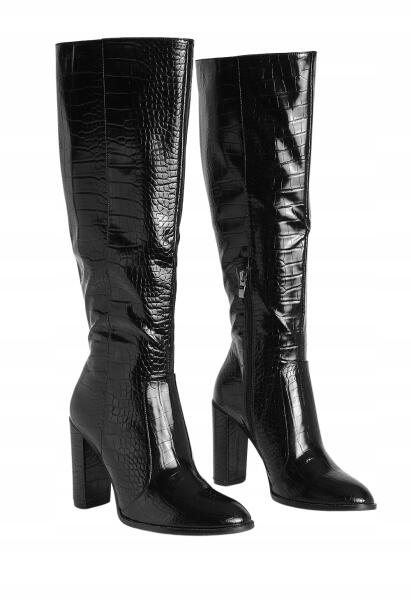 Boohoo ZC66306 Boohoo Fekete Lakk Csizma Állatmintás Sarokkal (40) 41 (123456)ALLEGRO