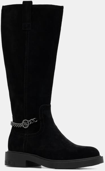Guess csizma velúrból FYONAL2 fekete, lapos talpú, FLFYN2 LEA11 - fekete Női 41