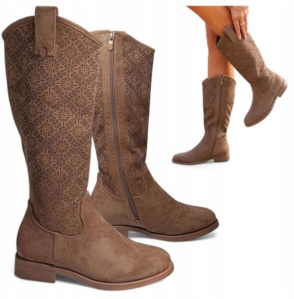 S. Barski Női hosszú csizmák 37 Lapos Cowboycsizmák Áttört Velúr Őszi Barski (Barski HY52-534 Coffee)ALLEGRO