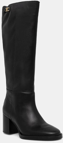 Tommy Hilfiger bőr csizma STACKED HEEL LEATHER LONG BOOT fekete, magassarkú, FW0FW08865 - fekete Női 37