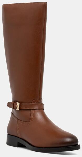 Tommy Hilfiger bőr csizma TH BUCKLE RIDING LTHR LONG BOOT barna, lapos talpú, FW0FW08873 - barna Női 36