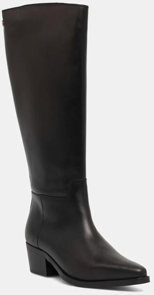 Tommy Hilfiger bőr csizma TH COWBOY LEATHER LONG BOOT fekete, magassarkú, FW0FW09157 - fekete Női 38