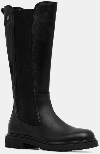 Tommy Hilfiger bőr csizma TH LTHR CLEATED LONG BOOT fekete, lapos talpú, FW0FW08985 - fekete Női 36