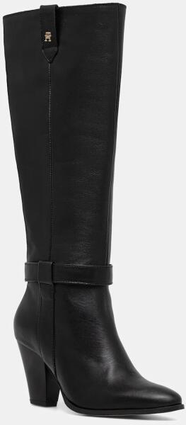 Tommy Hilfiger bőr csizma TH T-STRAP LTHR POINTY LONG BOOT fekete, magassarkú, FW0FW08982 - fekete Női 40