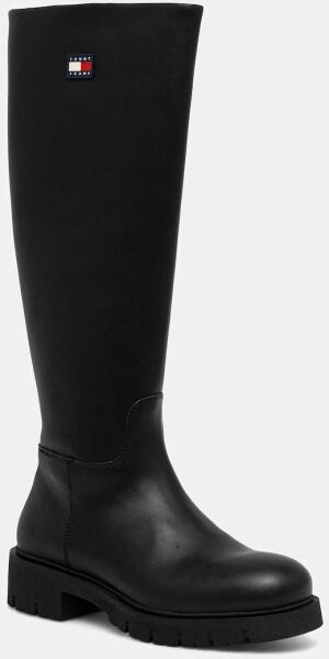 Tommy Jeans csizma TJW STRETCHY LONG SHAFT fekete, lapos talpú, EN0EN02828 - fekete Női 36