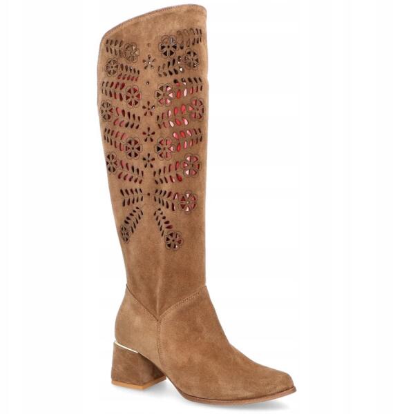 TYMOTEO Stílusos áttört csizma Tymoteo L1001 Bézs 38 (TYMOTEO L1001 CAMEL ZAMSZ)